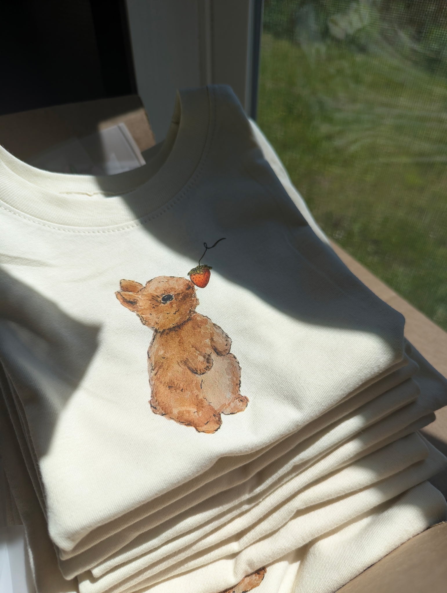 Bunnies love berries! Exclusive 2026 tshirt, with artwork by Lauren Robert. Heavyweight cotton tee that lays beautifully.