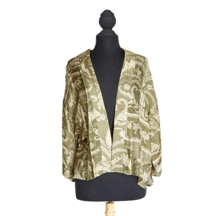 Vintage Damask Sage Short Kimono